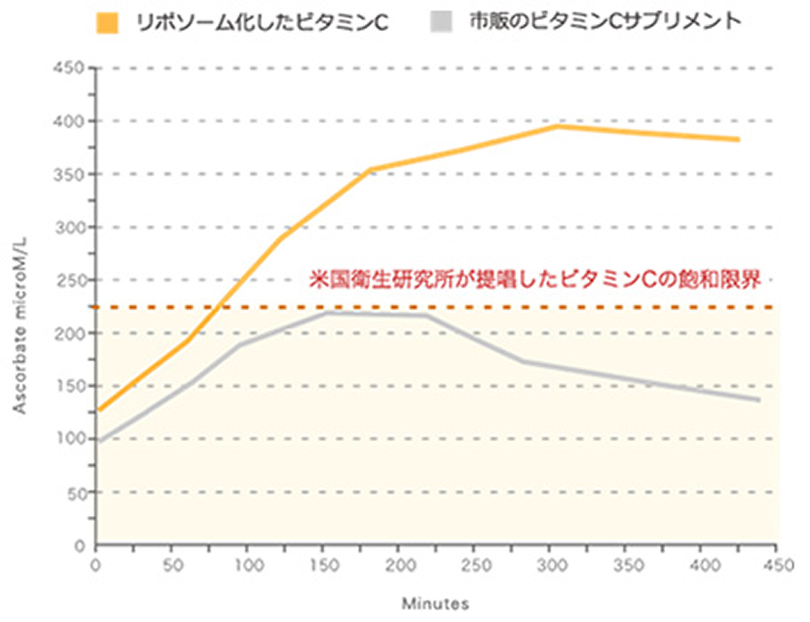 「リポ・カプセル ビタミンC」は、ビタミンCをリポソームという微細なカプセルに包み込んだ経口サプリメントです。